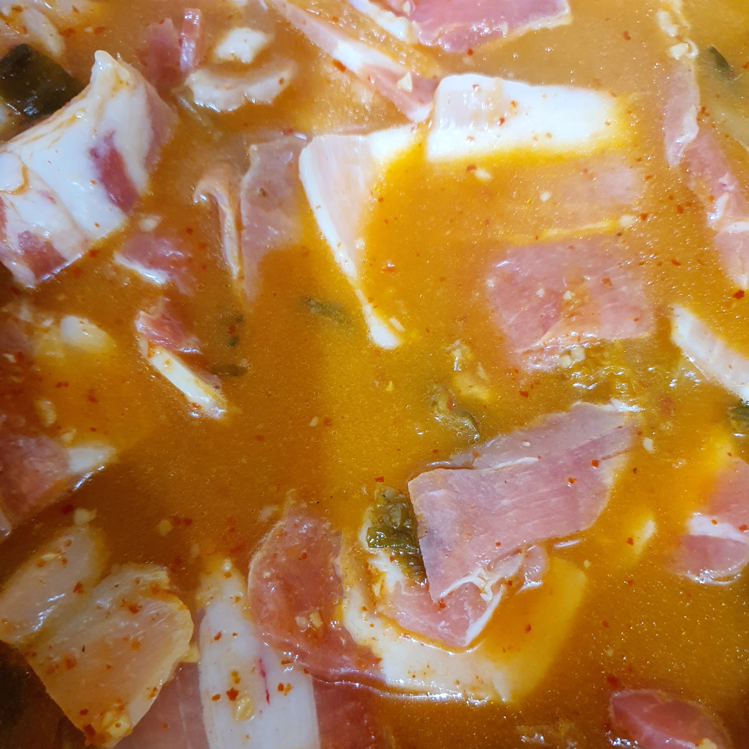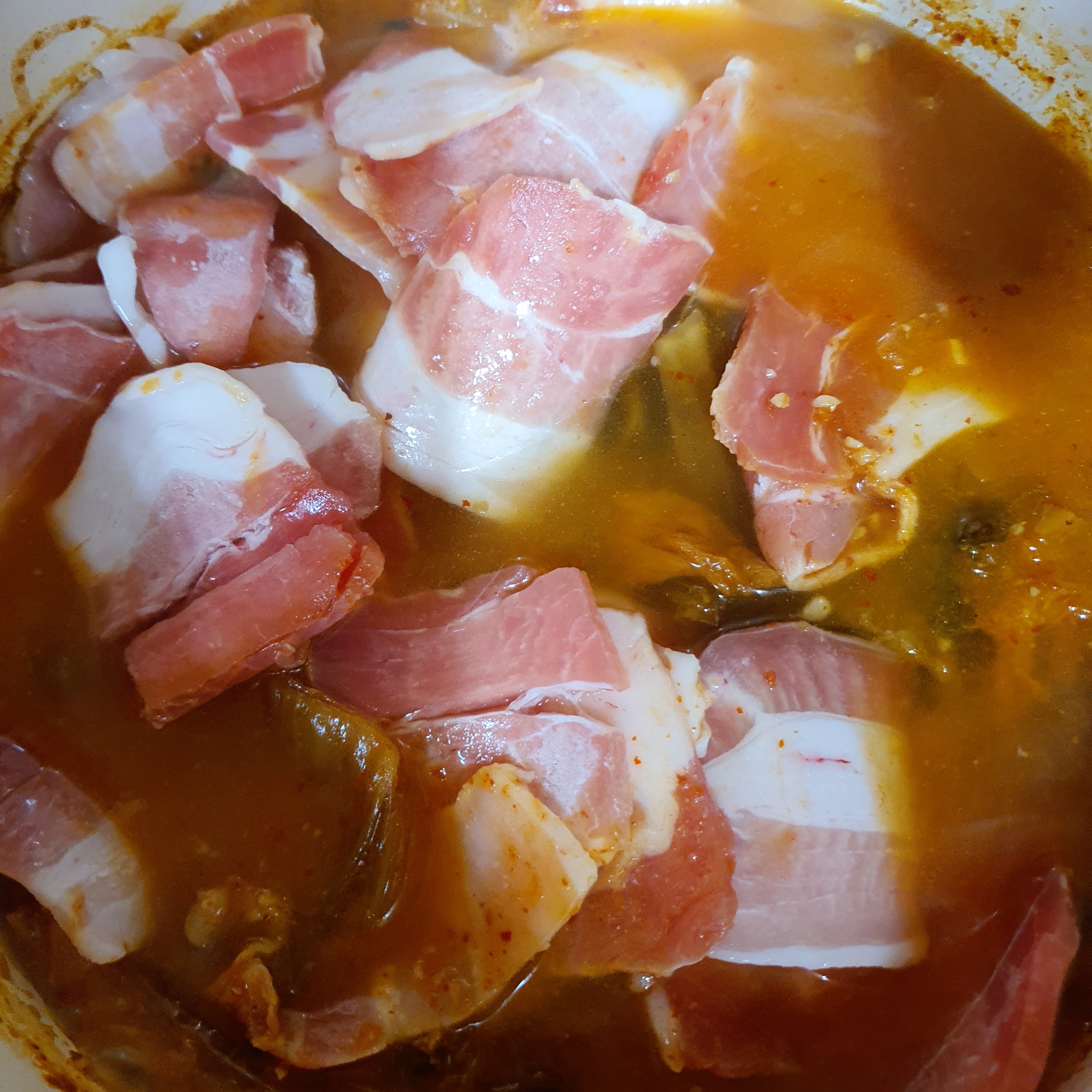 더 넣고 준비한 돼지고기를 넣습니다.