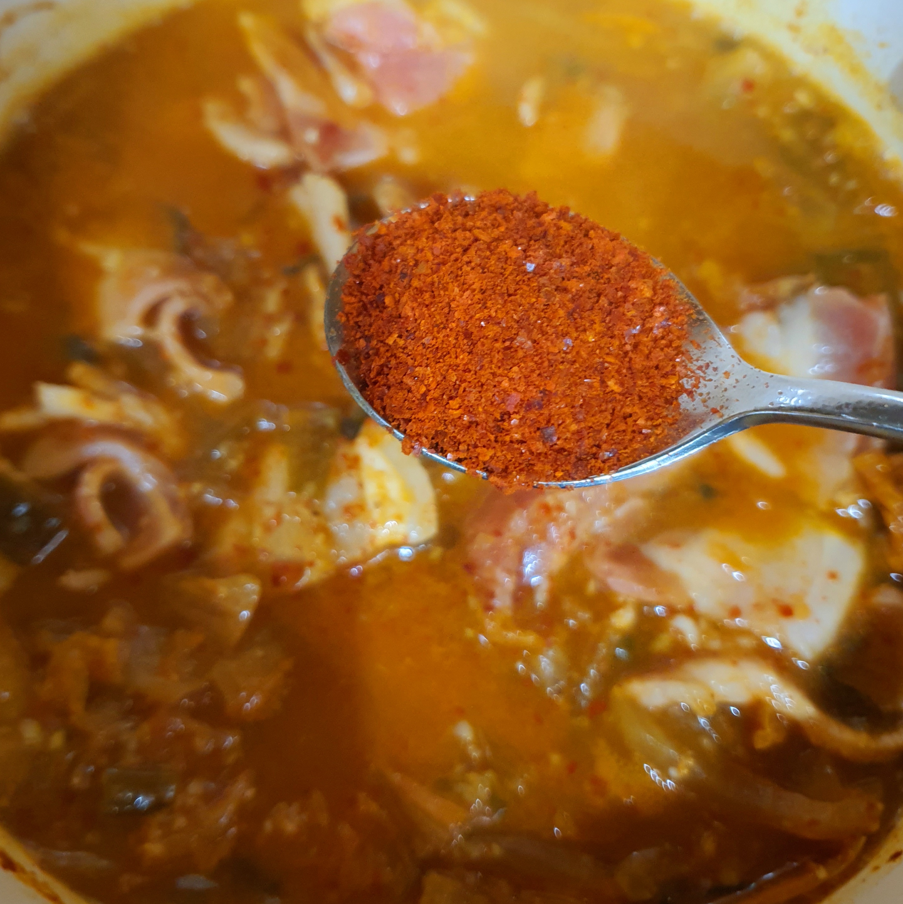 고춧가루를 2숟가락 넣었어요.