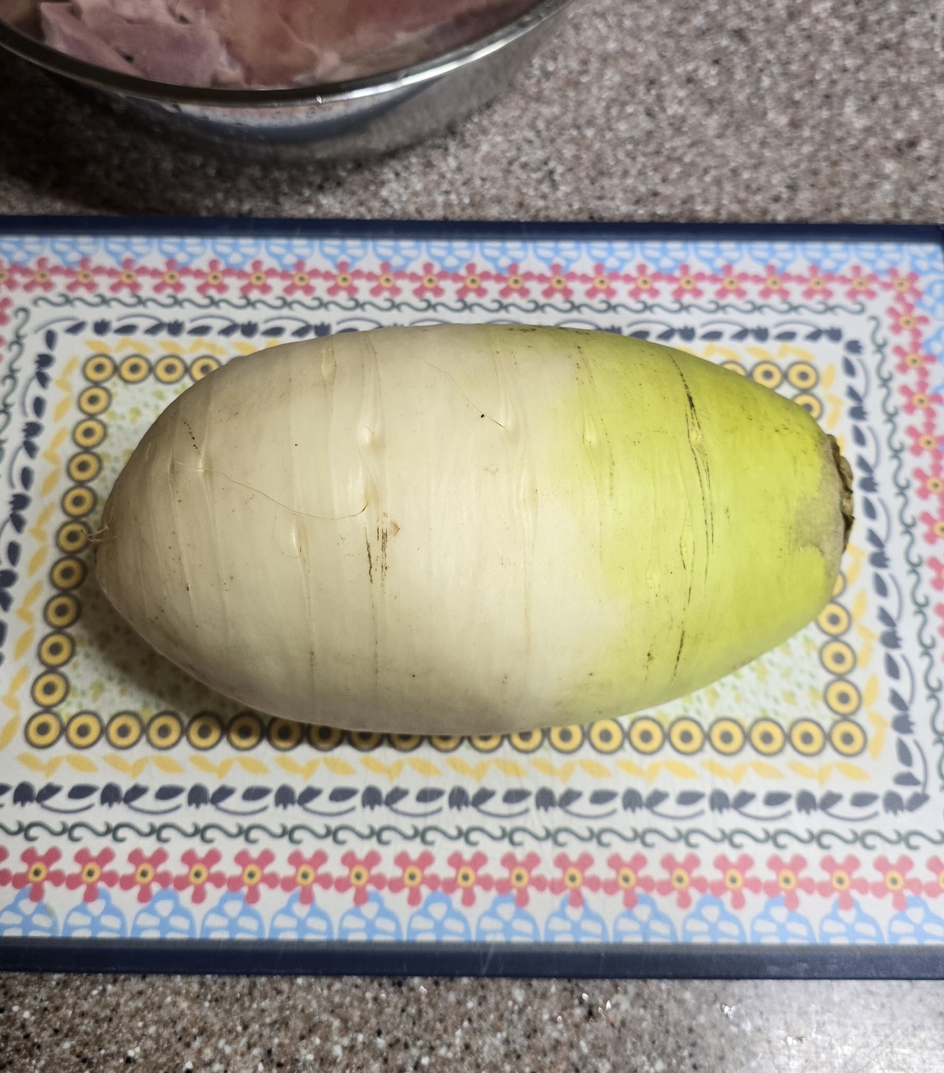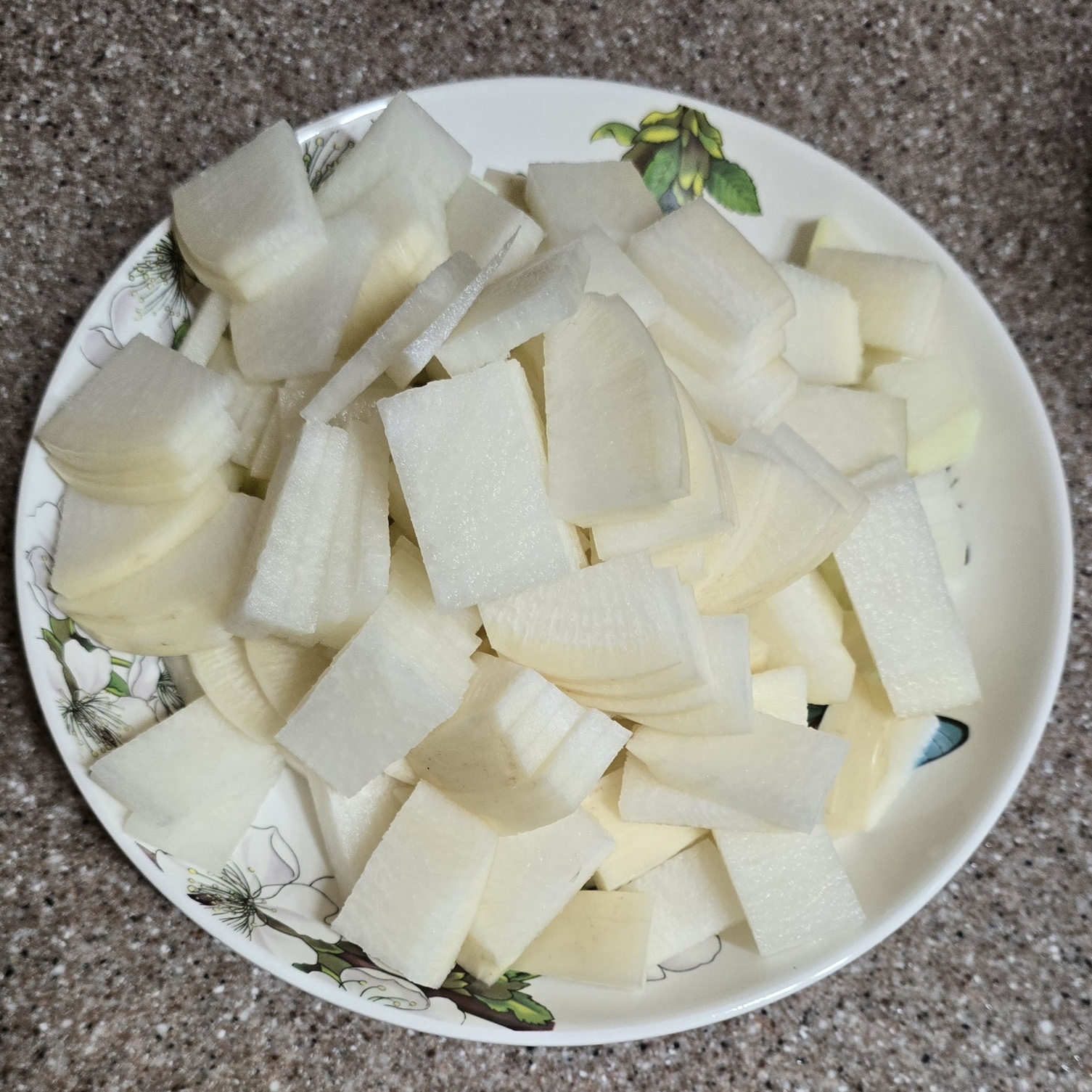 다음으로 무 반 개를 나박 썰기 해줍니다.