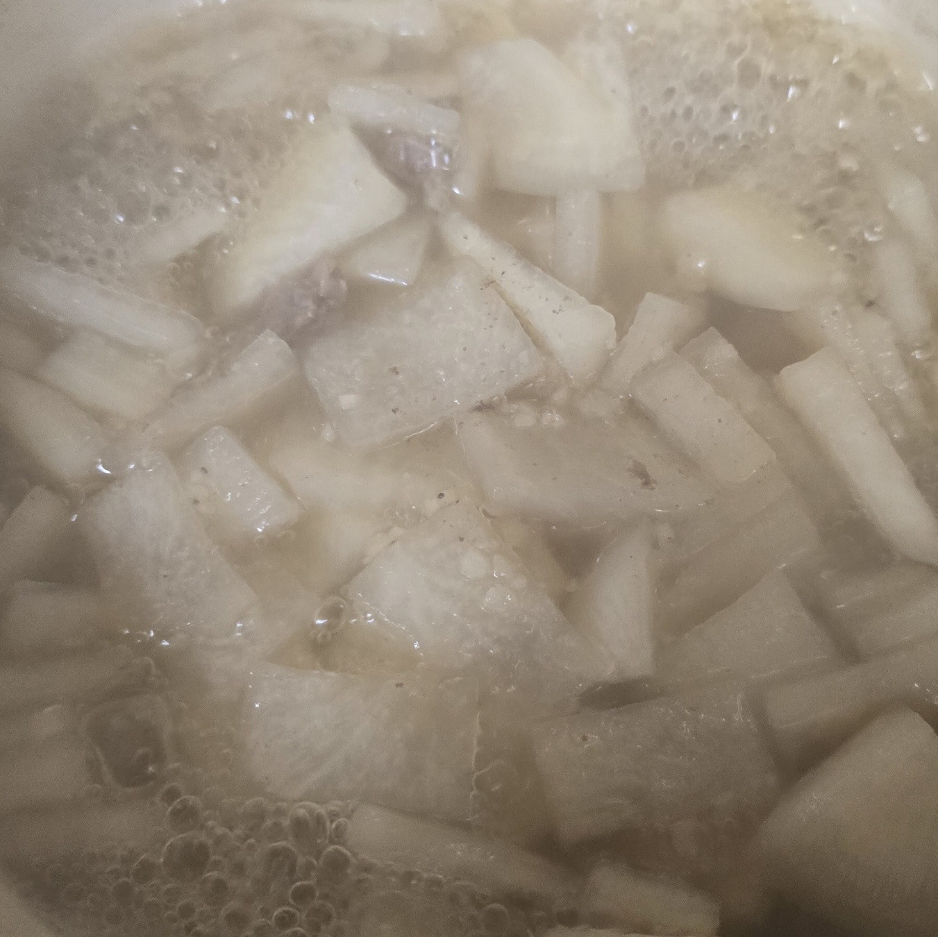 처음에는 가라앉았던 무가 끓으면서
