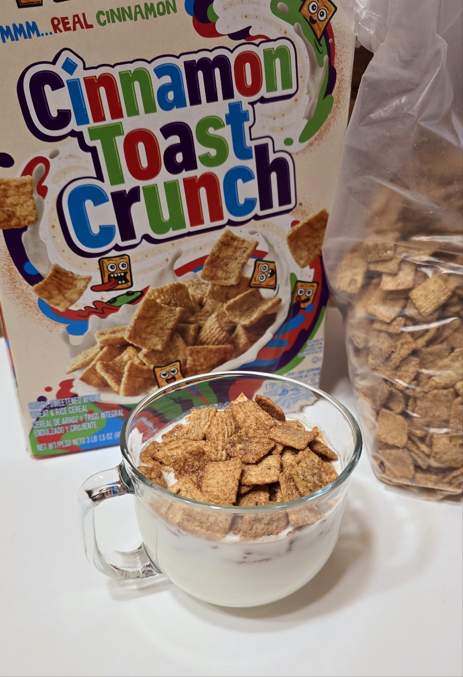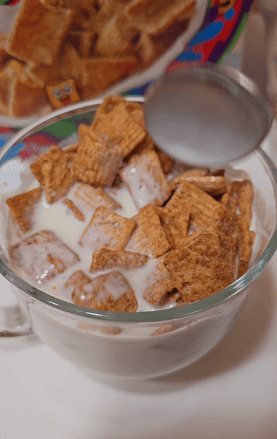 그럼 시나몬 토스트 크런치 시리얼은 우유와 함께 본격적으로 먹어볼까요?